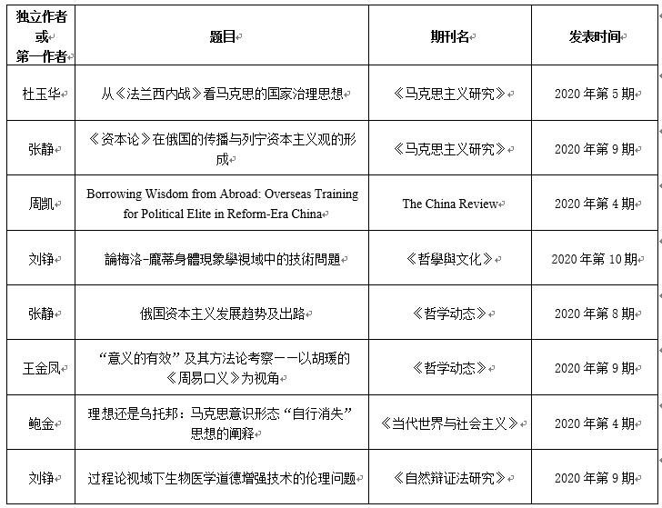 据不完全统计,2020年澳门六合彩下注平台 教师以独立作者或第一作者共发表论文170余篇,其中CSSCI论文112篇,三报一刊论文9篇,权威期刊(A、B)论文15篇。