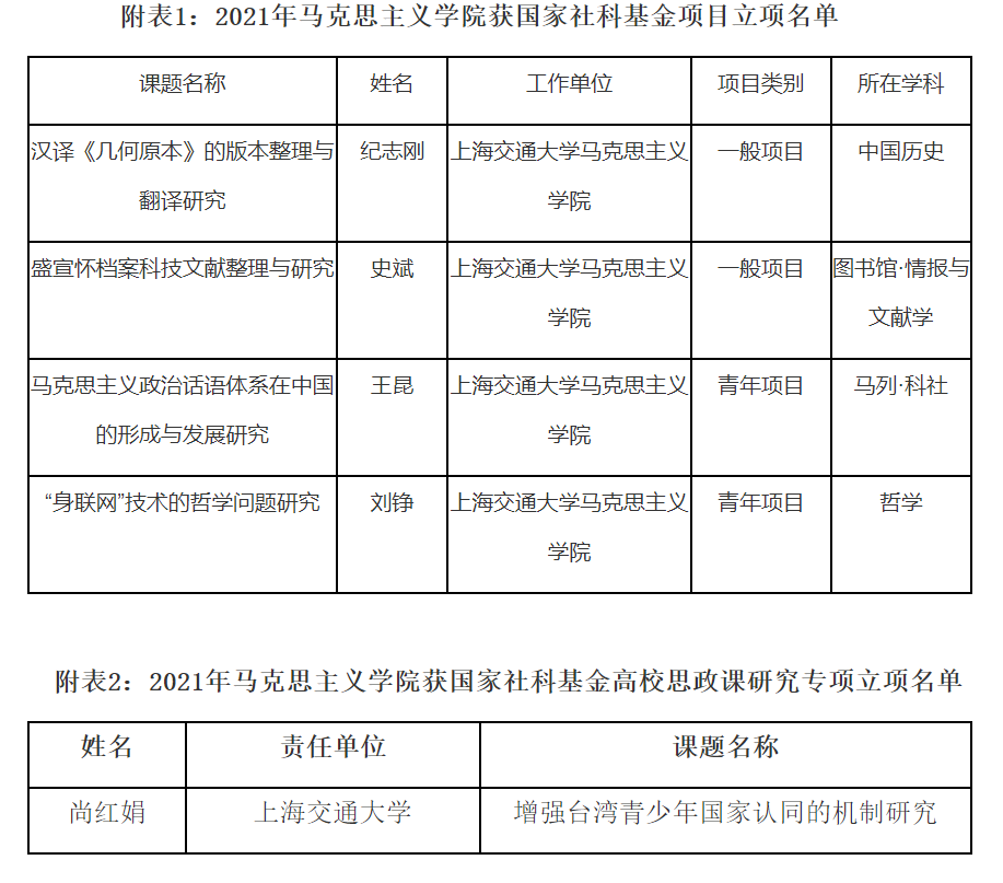 近日,2021年国家社科基金年度及青年项目立项结果、2021年度国家社科基金高校思政课研究专项立项名单正式公布。澳门六合彩下注平台 共有5项课题获得立项,其中国家社科基金年度一般项目2项,青年项目2项,思政专项1项,再创佳绩。