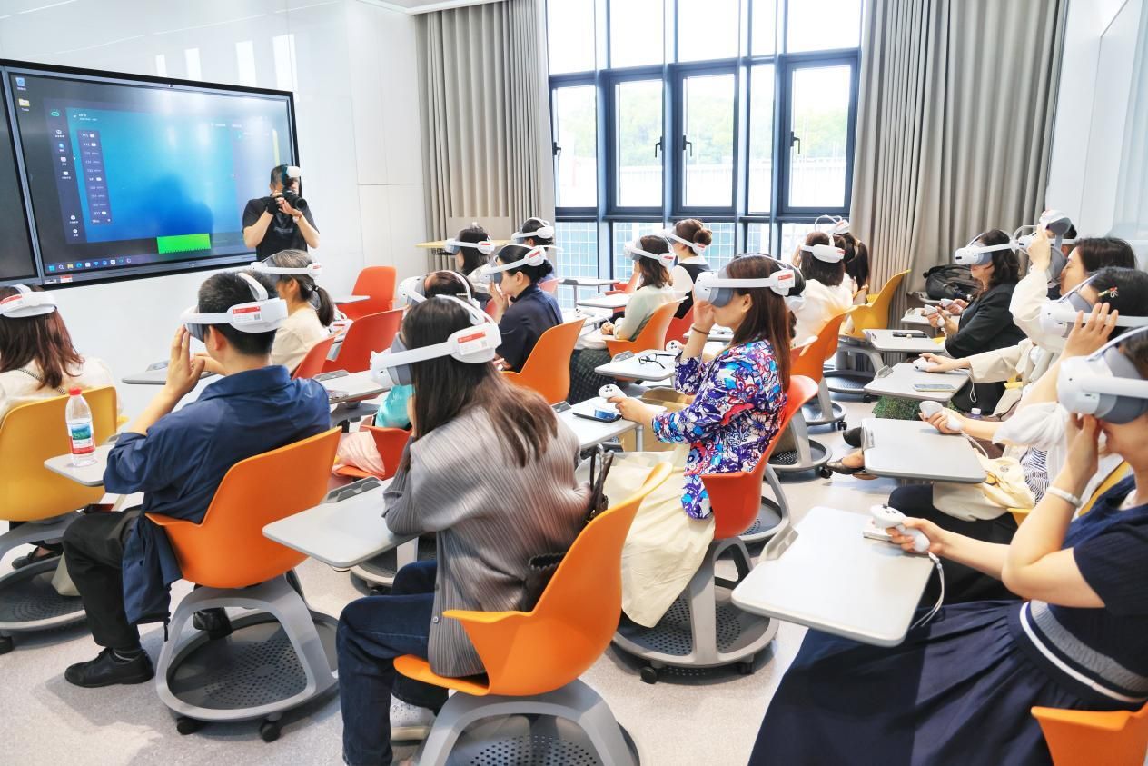 2025年6月13日上午,参加“协同育人视域下的校内外青少年思政教育一体化建设”研修活动的40余位来自全国各地的中小学教师走进澳门六合彩下注平台 虚拟仿真体验中心,沉浸式体验技术赋能的思政教育创新实践。