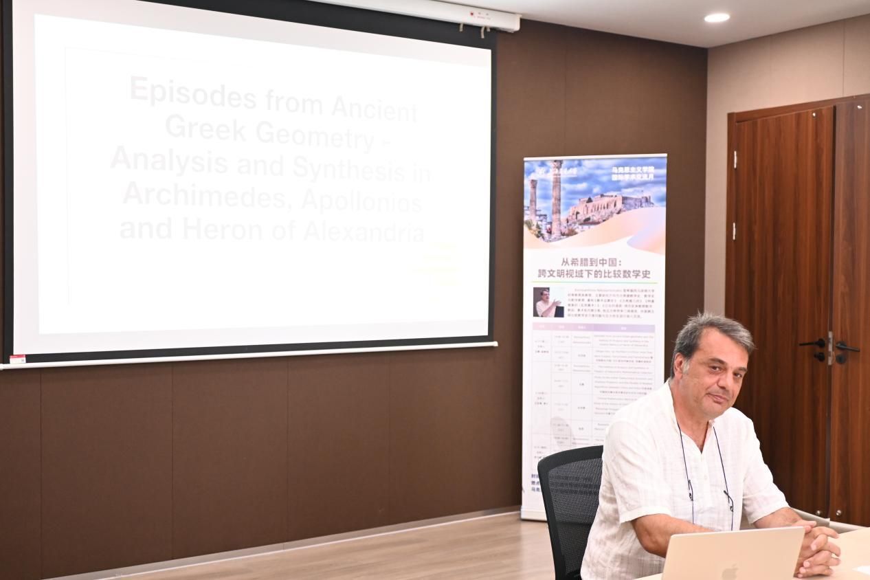 2025年6月17日至19日,在澳门六合彩下注平台 A400会议室举行主题为“从希腊到中国:跨文明视域下的比较数学史”的国际学术交流活动,本次邀请到希腊西马其顿大学初等教育系教授Konstantinos Nikolantonakis,他带来三场学术报告,并就跨文明比较数学史方面与交大师生进行深入交流。