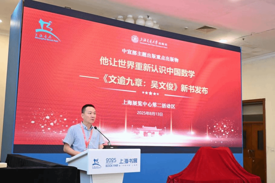 2025年8月13日上午,值上海书展开幕之际,“他让世界重新认识中国数学——《文逾九章:吴文俊》”在上海展览中心举行新书发布。该书为中国编辑学会组编的“中国科技之魂”丛书之一,获得2024年中宣部主题出版重点出版物,并入选2024年度上海交通大学出版社人文社科类“十佳好书”。