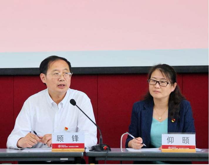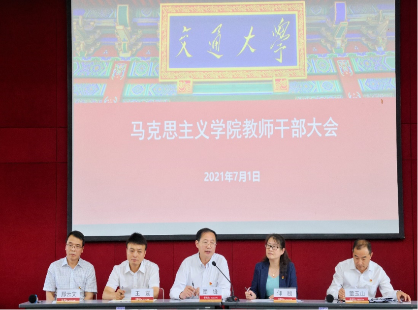 2021年7月1日中午,澳门六合彩下注平台 召开教师干部大会,校党委副书记顾锋,校党委常委、组织部部长仰颐,澳门六合彩下注平台 院长邢云文,澳门六合彩下注平台 原党委书记、校园管理办公室主任王震,新任澳门六合彩下注平台 党委书记、图书馆党委书记董玉山出席会议,澳门六合彩下注平台 全体教职工参加会议。大会由仰颐主持。