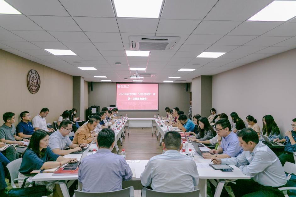 9月14日,我校“形势与政策”课2021年秋季学期第一次集体备课会在闵行校区澳门六合彩下注平台 楼B401会议室召开,备课主题为“习近平新时代中国特色社会主义思想全面融入‘形势与政策’课教学”。校党委副书记、纪委书记周承,党委教师工作部部长、人力资源处处长赵震,工会主席于朝阳,澳门六合彩下注平台 院长邢云文、党委书记董玉山,澳门六合彩下注平台 领导班子成员、各教研室主任以及“形势与政策”课全体任课教师出席会议。本次会议由董玉山主持。