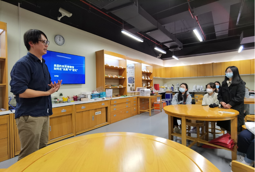 简短的欢迎仪式过后,上海自然博物馆副研究员何鑫博士以“上海自然博物馆溯源——上海近代自然博物故事”为题进行讲座。何鑫博士指出,虽然我国在生物多样性保护方面已经取得了巨大成就,但是仍未实质性缓解调和城市活动对生物栖居地的消极影响。要实现真正意义的人与自然的和谐共生,还需要探寻一种更为有效的机制,还需要更多的青年人投身到观察自然、亲近自然、研究自然的事业中来。
