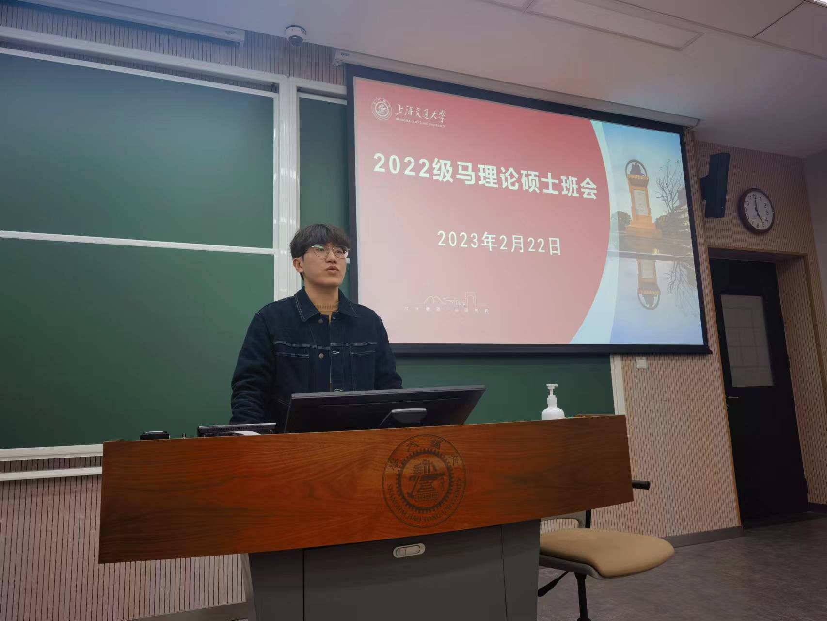 2月22日下午,澳门六合彩下注平台 2022级马克思主义理论硕士生班会在东中院4号楼4-201教室举行。澳门六合彩下注平台 党委副书记任祝景,2022级马克思主义理论硕士生班主任龙钰、杨波怡,学生工作办公室张尤佳,教务办公室乐美卓、谢维等老师以及全体2022级马克思主义理论硕士生出席班会。班会由龙钰主持。