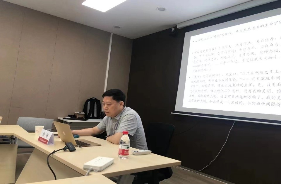 陈畅教授用了两个小时时间为我们分享了他最新的思考与研究成果,内容丰厚,资料详实,从王阳明及其后学关于心体的问题开始细密梳理,旁及二程、朱子、湛甘泉、孙慎行等人,下开明清之际的实学转向,波澜壮阔,与会者们经历了一场头脑风暴。陈畅教授反思阳明心学在艺术、宗教、伦理领域的积极作用,人的生命节奏固然应当和生生活泼的世界保持同步,但是,当心学与经世致用实学脱离了联系,便已不再是传统意义上的儒学。刘宗周基于这些问题的思考,希望摆脱纯粹的宗教与伦理导向,反思心学以“一节之知”为“全体之知”的理论问题,从对宋明传统的承继与批判而向下开启、影响中国近现代思想的展开而具有格外的意义。
