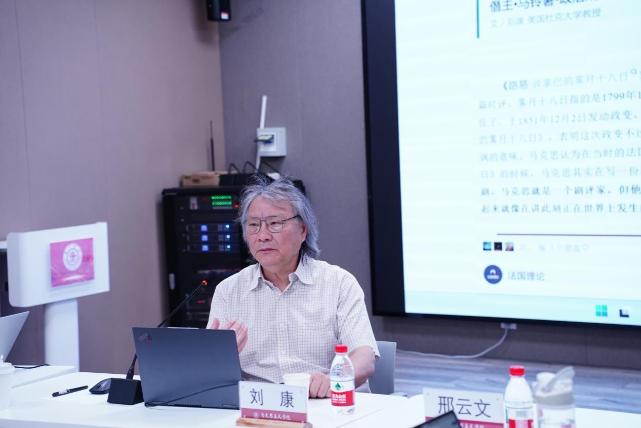 2025年4月17日,澳门六合彩下注平台 “国际学术交流月”再续华章,“国际马克思主义理论前沿讲座”第四期成功举办。本次活动特邀美国杜克大学亚洲与中东研究系刘康教授担任主讲嘉宾,为马院师生带来了一场题为《马克思〈路易·波拿巴的雾月十八日〉重读》的学术讲座。本次讲座由澳门六合彩下注平台 院长邢云文教授担任与谈人,澳门六合彩下注平台 党委书记余新丽、党委副书记张巍、特聘教授卜祥记等专家学者出席讲座,副院长韩振江教授主持。