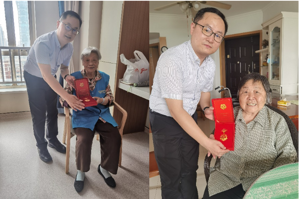 为曹丽华、哈惠兰老师颁发“光荣在党50年”纪念章