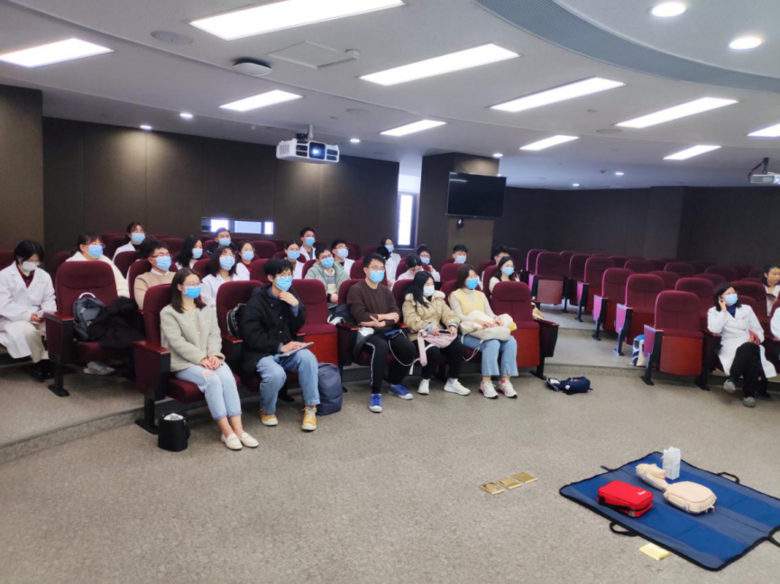史霆老师以真实案例引导大家认识到AED和心肺复苏的重要性,告诫大家身为一名党员,遇到紧急情况时,更应当要毫不犹豫运用正确方法进行施救。随后史老师对院外心脏骤停的生存链进行了精彩的讲解示教。在互动提问环节,也一一解答了同学们的问题。