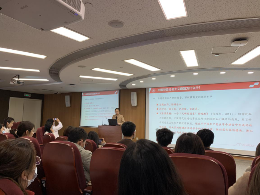 科学技术史研究生党支部的牟凯璇作了以“中国道路为什么行”为主题的党课宣讲,着重向大家介绍了坚持党的领导、充分考虑本国国情、以人民为中心、坚持改革创新、坚持对外开放等方面,以理论和案例生动论述中国道路为什么行。