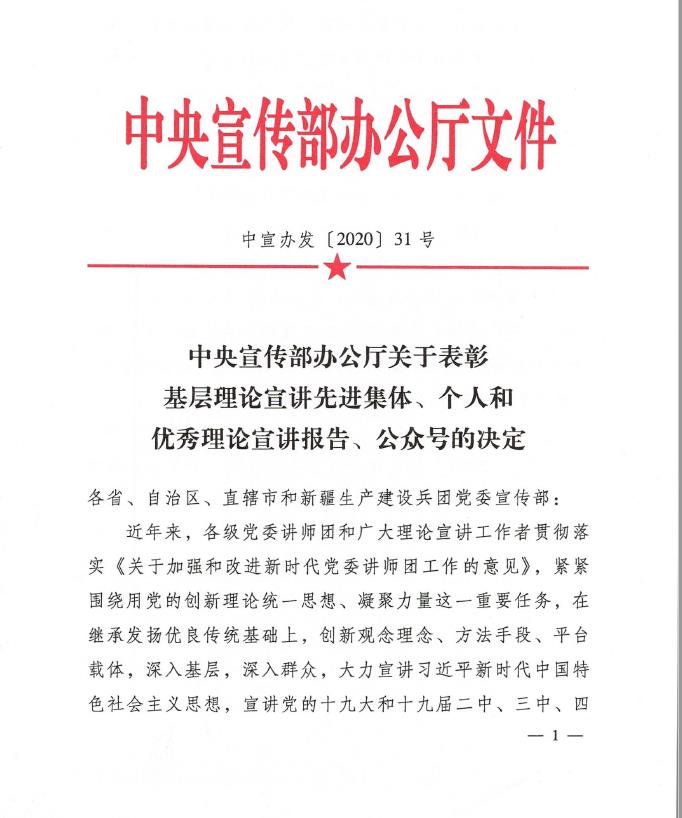 近日,中央宣传部办公厅发布《关于表彰基层理论宣讲先进集体、个人和优秀理论宣讲报告、公众号的决定》,澳门六合彩下注平台 陈锡喜教授被授予“2020年基层理论宣讲先进个人”称号。