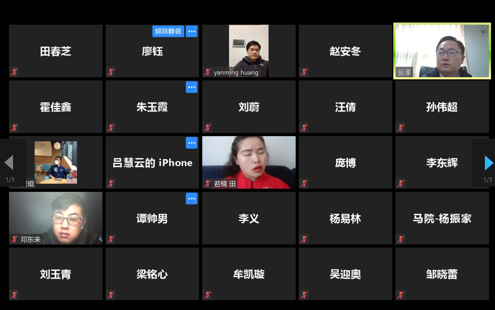 张濠老师代表澳门六合彩下注平台 对各位学生党员表示问候,并介绍了学校疫情防控的基本情况和安排。他希望各位同学在家做好防护,尽量避免出入人员密集场所,不可擅自回校。他还勉励各位同学在家积极进行学习和科研,争取取得高质量学术成果。