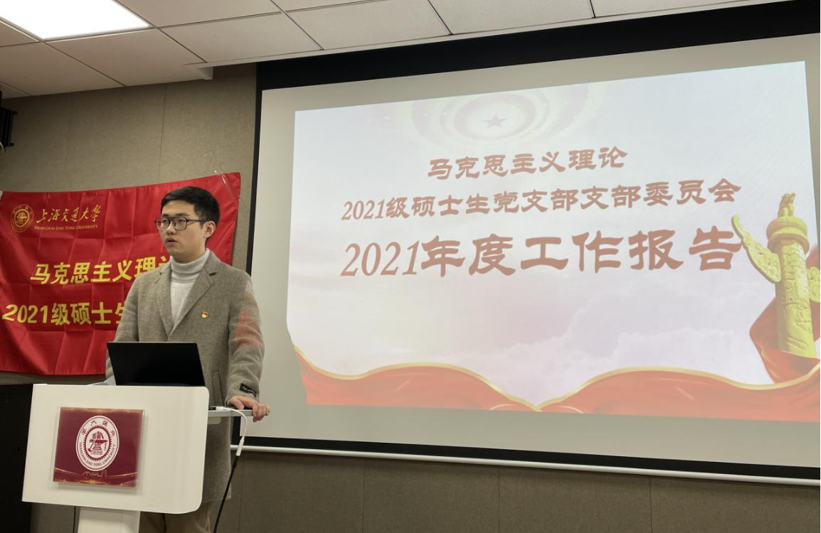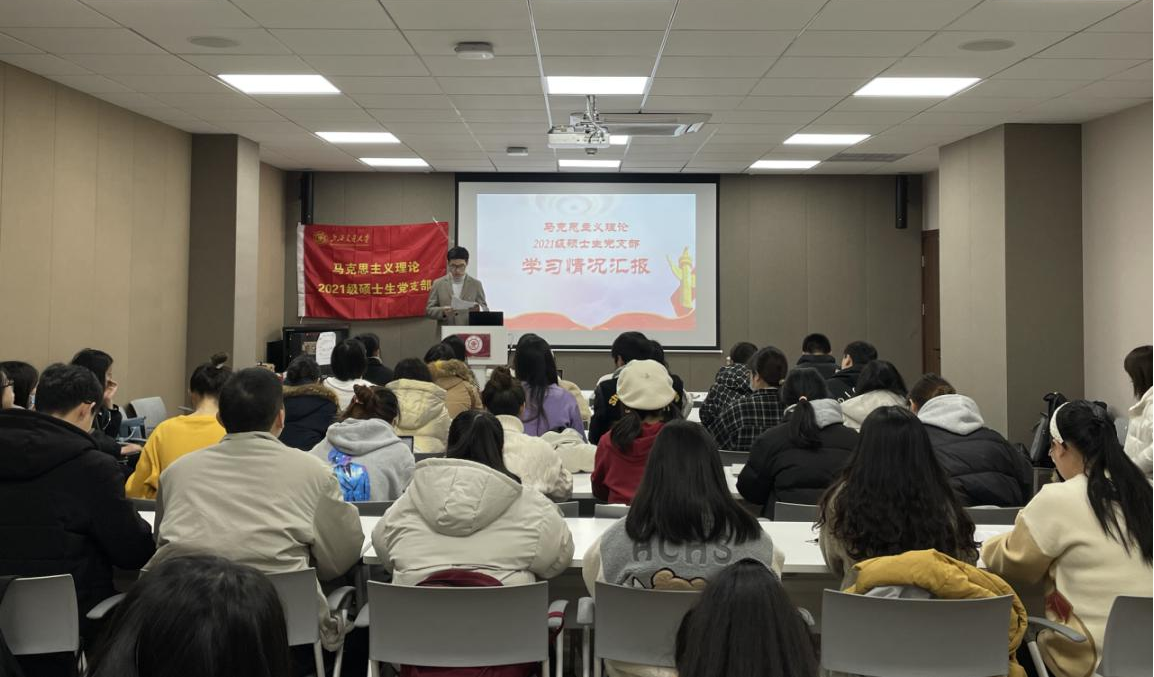 2022年1月5日,马克思主义理论2021级硕士生党支部召开党员大会,听取党支部2021年度工作报告,讨论2022年度工作规划,通报支部学习教育学习情况,表彰“学习达人”,表决预备党员转正。会议由党支部书记赵凌杰主持。