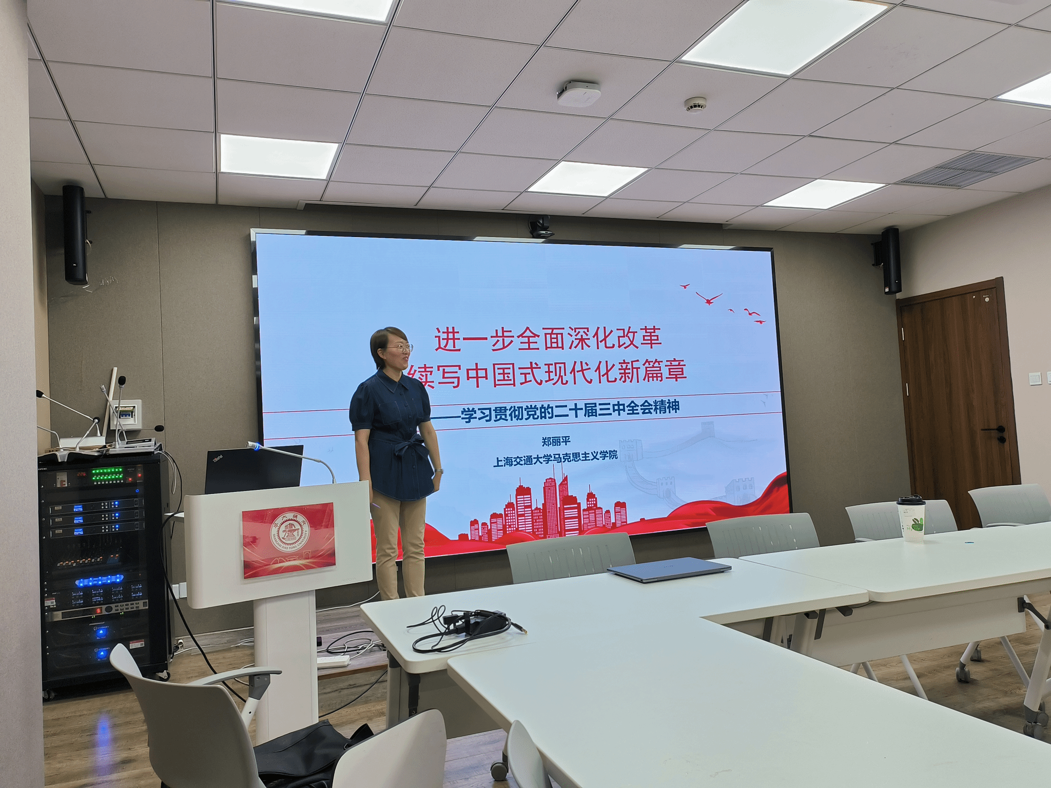 郑丽平作题为《进一步全面深化改革、续写中国式现代化新篇章——学习贯彻党的二十届三中全会精神》的专题报告。报告紧紧围绕二十届三中全会的会议精神,从“二十届三中全会的主题和 《中共中央关于进一步全面深化改革、推进中国式现代化的决定》的结构框架”“深刻把握二十届三中全会精神的六个重要问题”“学习贯彻二十届三中全会精神的建议”等三个方面展开。