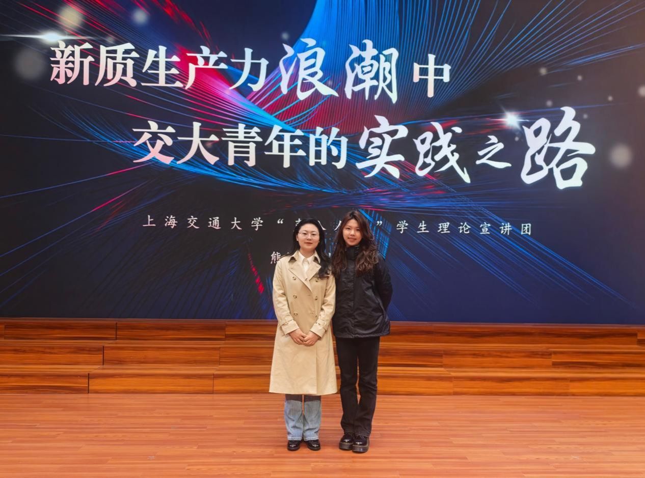 4月7日,宣讲团讲师熊倩蓝、刘禹希以《新质生产力浪潮中交大青年的实践之路》为题进行宣讲,通过前沿理论与典型案例相结合的形式,向在场师生展现了交大青年在科技创新浪潮中的实践与担当。