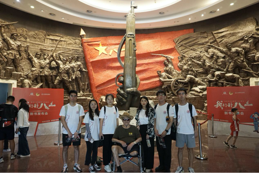 实践团成员观看了由南昌八一起义纪念馆、共青团南昌市委和江西教育出版社共同主办的《我们的八一》新书发布会,并采访了受邀老战士代表李潭清同志。李谭清老战士1945年参加八路军,1950年入党,历任二十八军第二十九师战士、卫生员,曾参加了抗日战争及泰安战役、莱芜战役、孟良崮战役、济南战役、中原战役、淮海战役、渡江战役、解放大上海战役、福厦战役等重大战役;先后荣获“解放奖章”“中原战役纪念章”“淮海战役纪念章”“渡江战役纪念章”“抗战胜利70周年纪念章”“建国70周年纪念章”等。回忆起艰难的作战岁月和自己的毕生经历,李谭清老战士很是感慨,他嘱咐实践团成员:“你们都是大学生、研究生,毛主席讲世界是你们的,也是我们的,但是归根结底是你们的。你们青年人朝气蓬勃,正在兴旺时期,好像早晨八九点钟的太阳,希望寄托在你们身上。”实践团成员听完李潭清老战士的讲述十分触动,表示一定不忘老战士的嘱托“为祖国建设服务,报效祖国”。