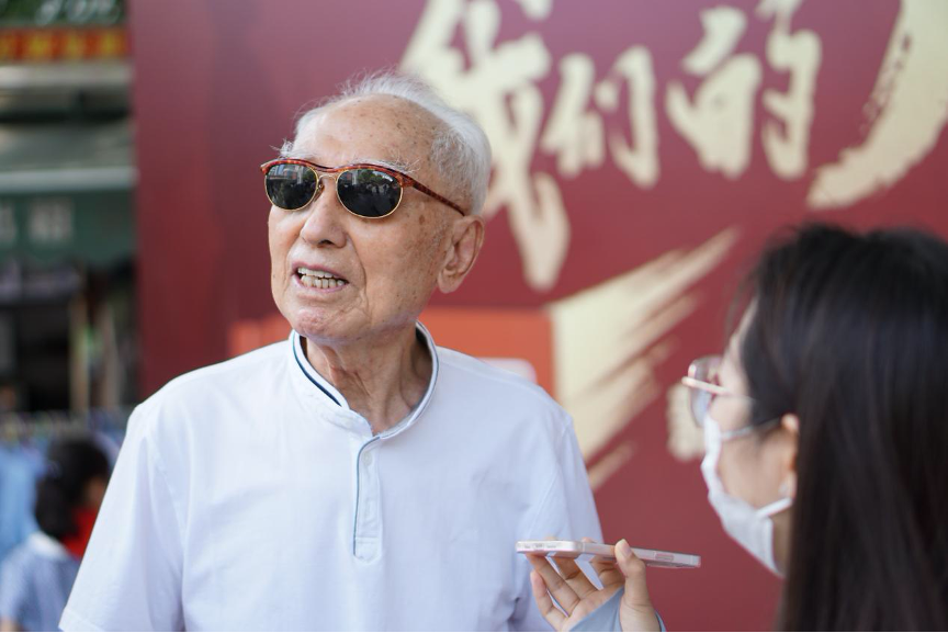 图为实践团成员采访李潭清老战士。胡旺 供图