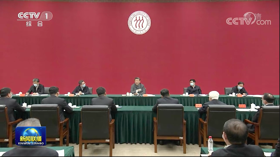 4月25日上午,习近平总书记来到中国人民大学考察,走进思政课智慧教室、博物馆、图书馆,了解学校促进思政课教育改革创新、学校历史沿革、教学科研成果、加强文献古籍保护利用和促进理论研究成果转化应用等情况,并主持召开师生代表座谈会。习近平总书记强调,坚持党的领导传承红色基因扎根中国大地,走出一条建设中国特色世界一流大学新路。