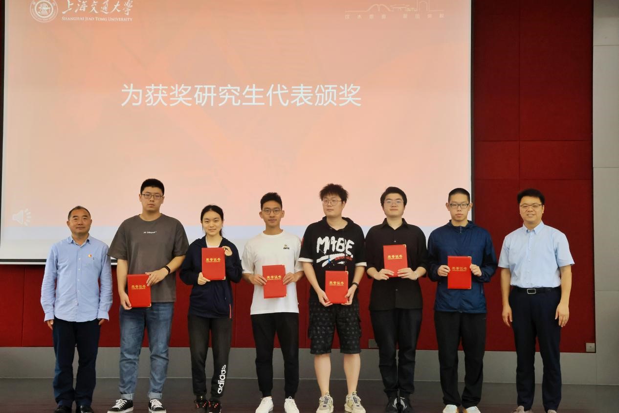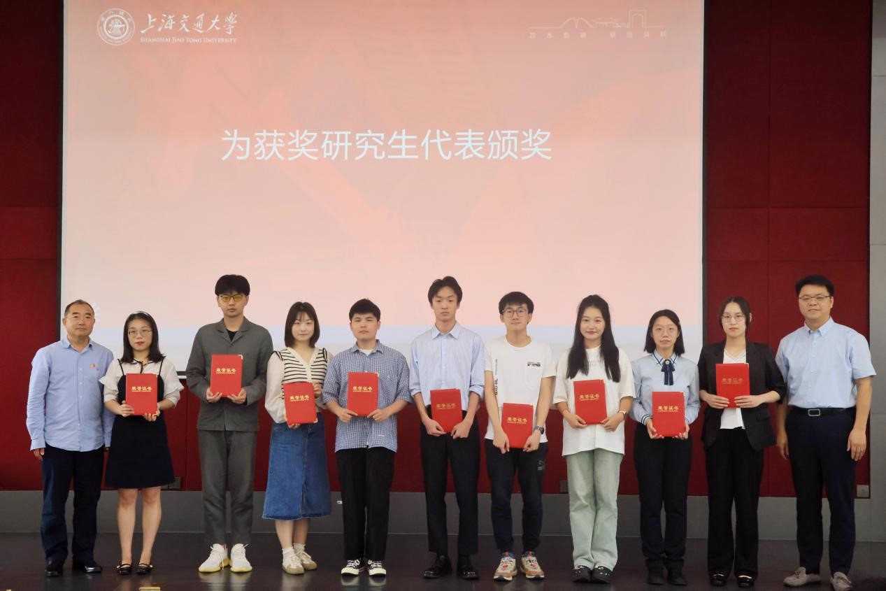 研究生院副院长程金华宣读获奖学生名单并与董玉山共同为给获奖研究生代表颁奖。程金华副院长代为转达了徐学敏副校长对本次活动的祝贺和讲话。徐学敏副校长指出当今世界处于百年未有之大变局,中华民族的伟大复兴也进入到关键阶段,大国博弈风起云涌,各种矛盾挑战非常尖锐。当代青年人尤其需要擦亮自己的眼睛,找准自身的定位,在民族复兴的伟大进程中迸发青春的光彩。学习党的二十大精神对于研究生同学来说有着更高的要求,那就是对先进方法论的学习,对习近平新时代中国特色社会主义思想方法论的学习和体悟。这是中国化时代化的马克思主义的精髓。研究生就是要研究,要以马克思主义的世界观、方法论来武装头脑,研究自然规律、社会规律、和精神心理规律,这需要运用马克思主义的研究方法和研究范式。上海交通大学致力于培养创新型领袖人才,要成为世界重要人才中心和创新高地,为国家打造人才国际竞争的比较优势。在新时代,交大研究生要承担相应的历史使命。她给研究生提出了四点要求:第一,要注意先进价值观的树立;第二,要注意创新意识和能力的提升;第三,要注意健全人格的养成;第四,把新时代科学家精神作为自己的“精神之镜”。程金华代表研究生院介绍了近年来我校研究生培养的顶层设计和推进思路,对获奖研究生同学表示热烈祝贺,对本次活动的精心组织和交大研究生的热情参与给与了高度评价,并祝愿广大研究生同学取得更大进步。